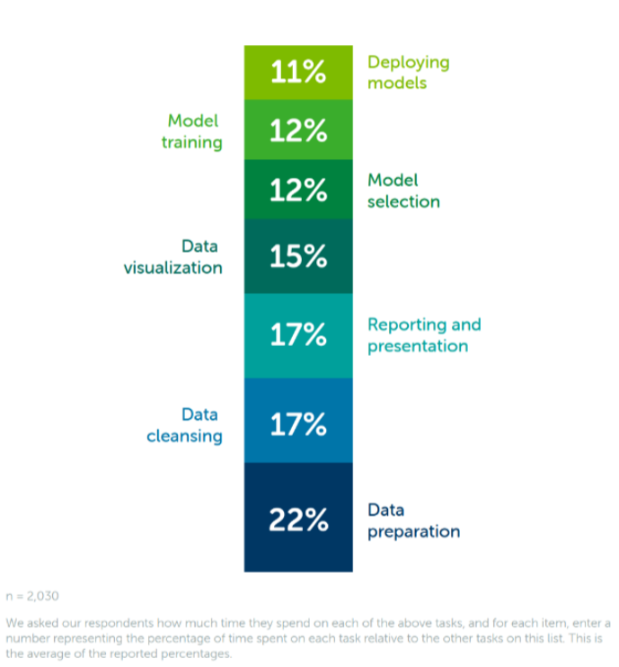 According to the 2021 State of Data Science Report, Data Scientists spend nearly 40% of their time collecting, cleaning, and organizing data. And from my experience, the majority of that is focused on the wealth of internal information that Data Scientists have at their fingertips within the organization. That number continues to creep up when you layer in the need to look for additional data sources outside your organization.