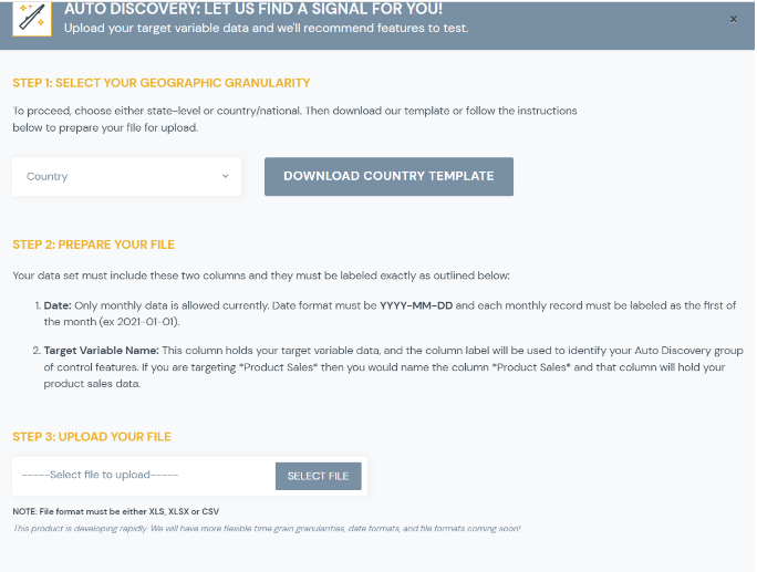 Step 2: Enter the basic information for your signal, select Geographic Granularity and upload your file.