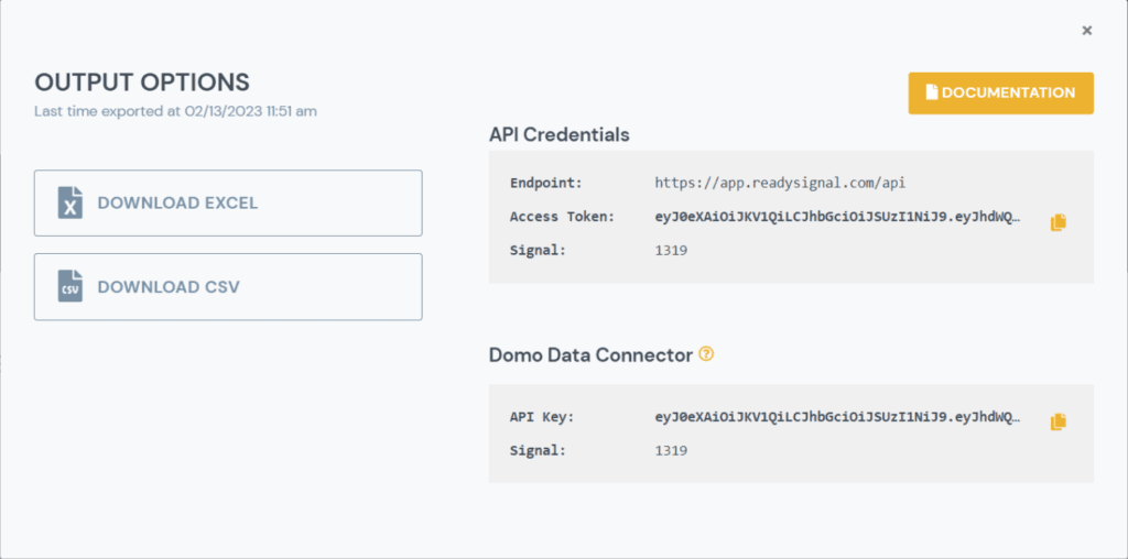 Next steps: Get the output of your signal data in either a CSV or Excel format by using the “Download” option in the platform.