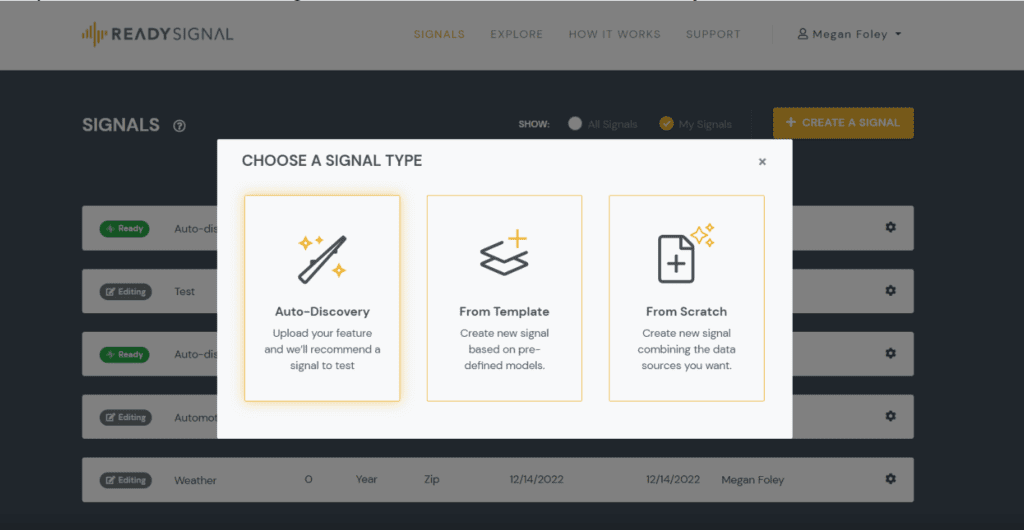 Step 1: Click the “Create Signal” button and select Auto-Discovery