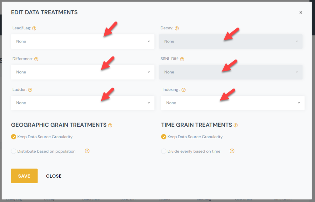 2) Select the Data Science Treatment you would like to apply, and select the desired sub option.