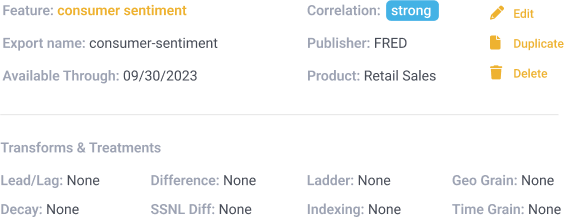 Effortlessly identify the most relevant external factors for your business or product. Make data-driven decisions faster and more accurately. Whether you’re looking to understand and explain inventory, demand or sales, our platform, recommends the best features for your specific needs.